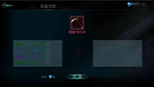 游戏中的装备可以通过洗练获得附加属性, 根据装备的不同品质,可以开启2-4条属性。洗练后的属性也根据颜色分为6种不同品质,玩家在洗练时可以锁定想要保留的属性对装备进行洗练。