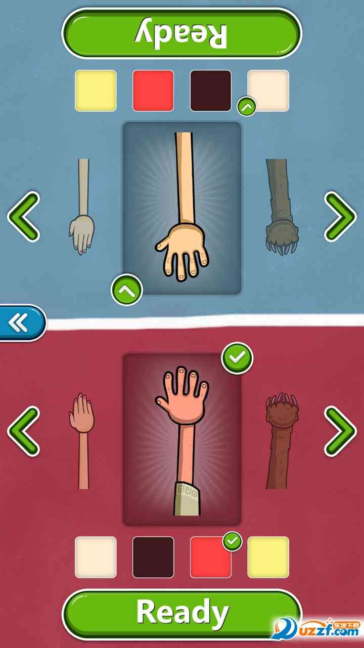 先说说进入游戏后你可以选择你的手。两人面对面在同一个手机上进行对战,比拼谁的反应更快。手的造型多种多样,你可以根据自己的喜好选择。游戏开始后看谁先点击屏幕,谁的手先被打,谁就输了。游戏简单易懂,但要想赢,需要眼疾手快。