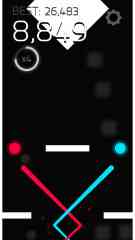 这是一款由公司开发的轻型PUZ游戏, 游戏采用纵向卷轴模,玩家操纵红、蓝两条只能斜向前进的线条向上移动,是一款系统简单的游戏。 这款游戏的画面非常简单, 游戏的背景是全黑的,用红、蓝两色表示线条,也有对应颜色的加分道具,两侧的墙壁和出现的各种形状的障碍物都是用白色来表示, 在游戏中,玩家将操控两条向上延伸的线条或物体让其走的更远。游戏操作简单,手指点击即可完成华丽的转换轨迹,琢磨琢磨。。