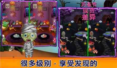 《万圣节现货的差异》是一款以万圣节为主题的找茬类手机游戏。在这个游戏中,你将不再是普通的找茬,而是要在万圣节的元素中寻找那些微小的差异。这可能是第一次你需要在动画中欣赏到万圣节角色的区别,这样的设计无疑增加了游戏的趣味性和挑战性。