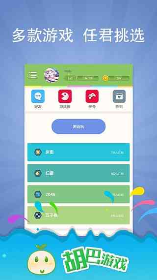 记住... 胡巴游戏是一款游戏与社交两者结合的游戏平台,它可以很方便的和好友或者是附近的人PK游戏。