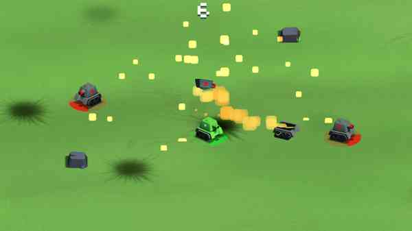 太硬核了。 游戏玩法类似于“碰碰车”, 玩家将驾驶一辆绿色坦克在战场中行驶,坦克上装有炮弹筒,不过它不是用来发射炸弹而是用来“撞”的。当遇见能量比自己低的**弱小坦克**时 直接撞上去就能够直接摧毁它了但如果去招惹比自己能量更足更强大的坦克则有可能导致同归于尽或是以卵击石的局面。