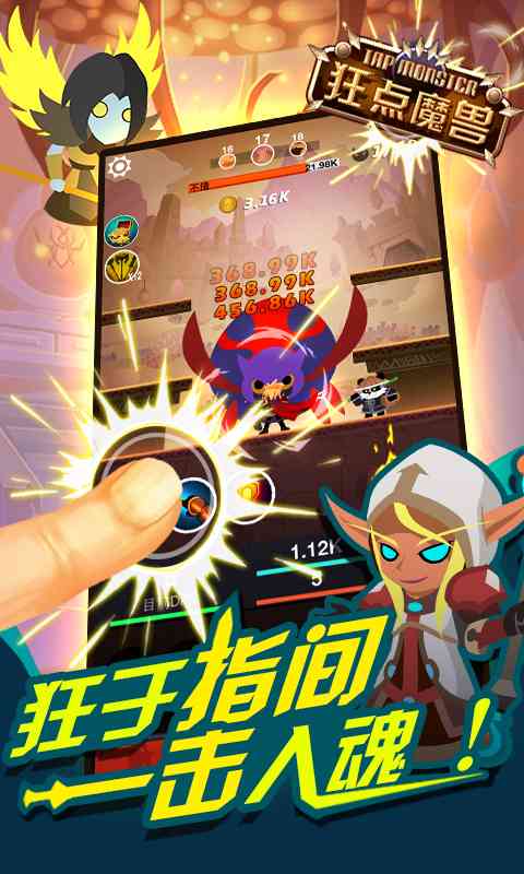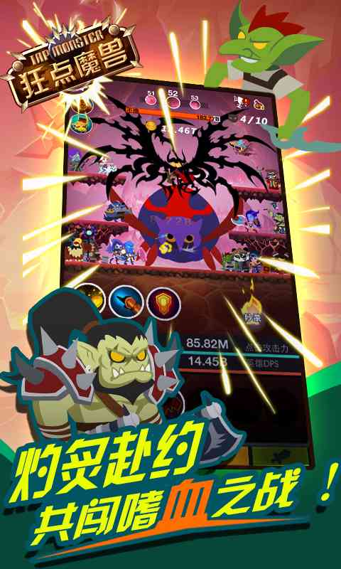 玩家要做的就是使劲点点点, 游戏还有BOOS,大BOOS, 深得我心。 让你手指根本停不下有木有!狂点魔兽!让你爱不释手!