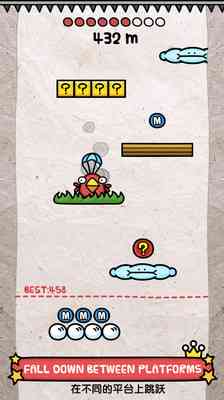 《地狱观光团》安卓版是一款以涂鸦风格为主的休闲闯关手游。在游戏中,你需要操纵小鸡不停地往下掉,一边掉一边吃掉M币, 梳理梳理。 吞掉奇怪的事件你还可以往下急冲哦。不过要是没来得及往下跳或者一跳掉到底了小鸡都会死的,所以要眼明手快把握度。