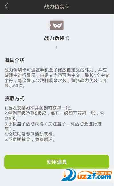 战力卡说明:手机盒子用户专享道具,登录APP进行签到可获得。