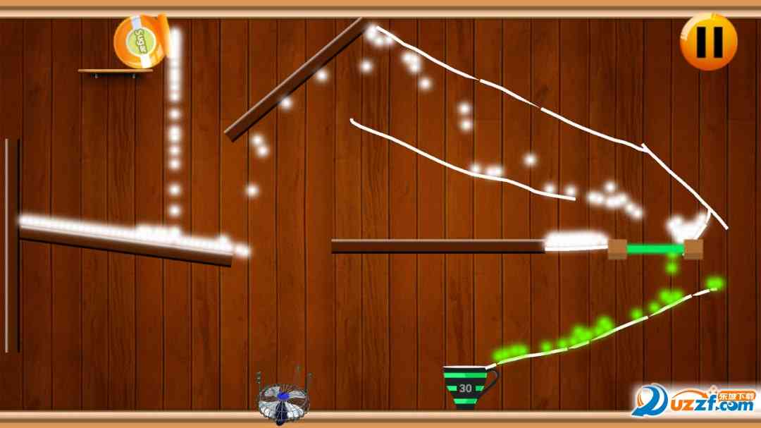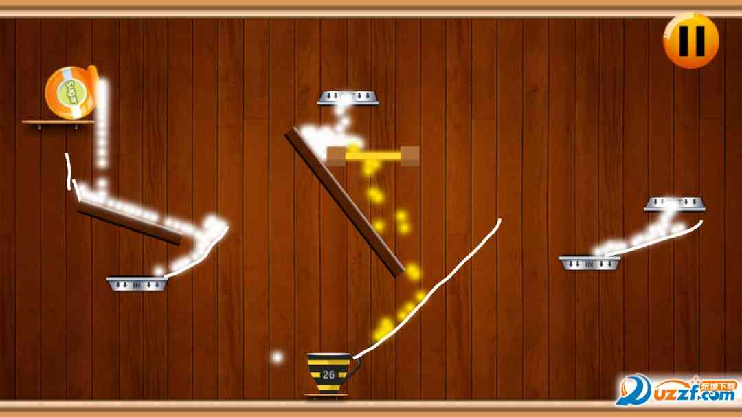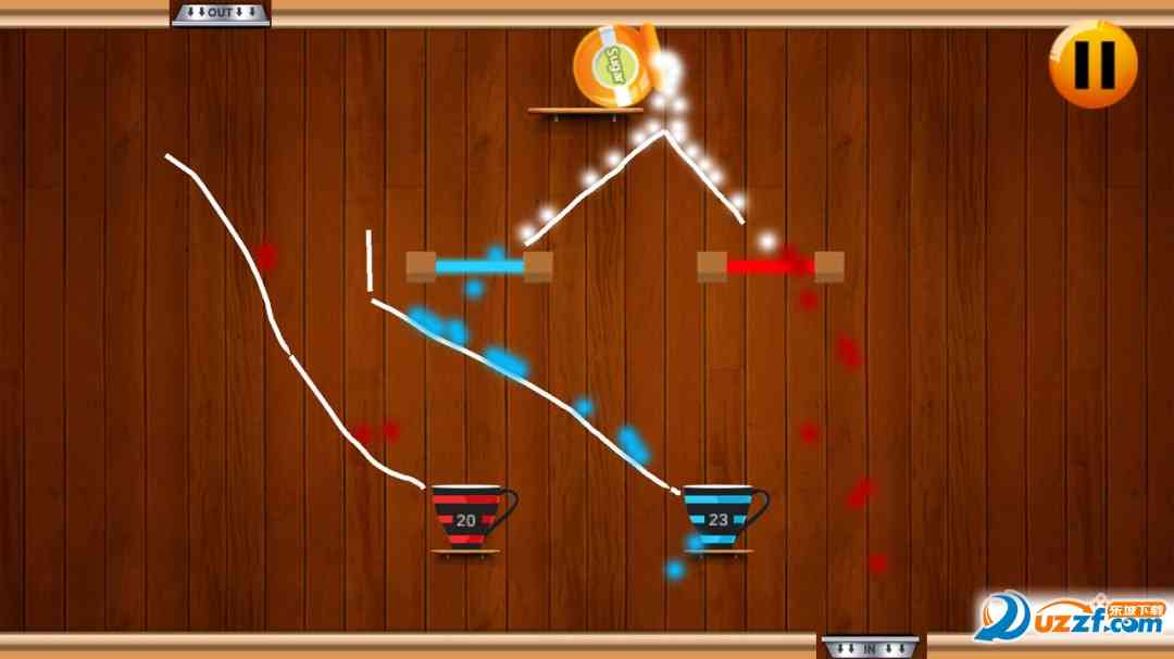 这是一款物理游戏,与曾经的一款《砂糖游戏》玩法类似那个。玩家手绘出线条, 引导掉落的砂糖到指定的杯中,注意,有些杯子只接受指定的颜色,所以你必须先引导砂糖穿过染色区。挺好的,换位思考...。
