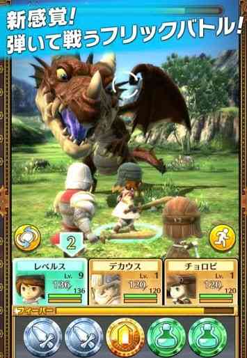 来看看最关心的战斗部分, 游戏的战斗非常独特,大体上抛弃了日系 RPG 传统的指令式攻防,全部以划屏操作。人物的攻击、 技能、防御、魔法全部用徽章来实现,剑的徽章代表普通攻击、水晶石的徽章代表魔法攻击、五角星徽章代表特殊技能、弹簧形状的徽章其实是连续技,需要三个同样的徽章才能释放。?号徽章则是随机转盘,可以带来十分狗屎运的战斗效果,但大多数时候都是脸黑的。药瓶徽章表示使用道具,比如回血或者是复活,要拖到对应队友的头上才是正确使用哦。