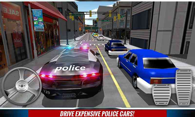 驾驶警车继续关注街头犯法,并采取了警方通缉犯法团伙和敌人。