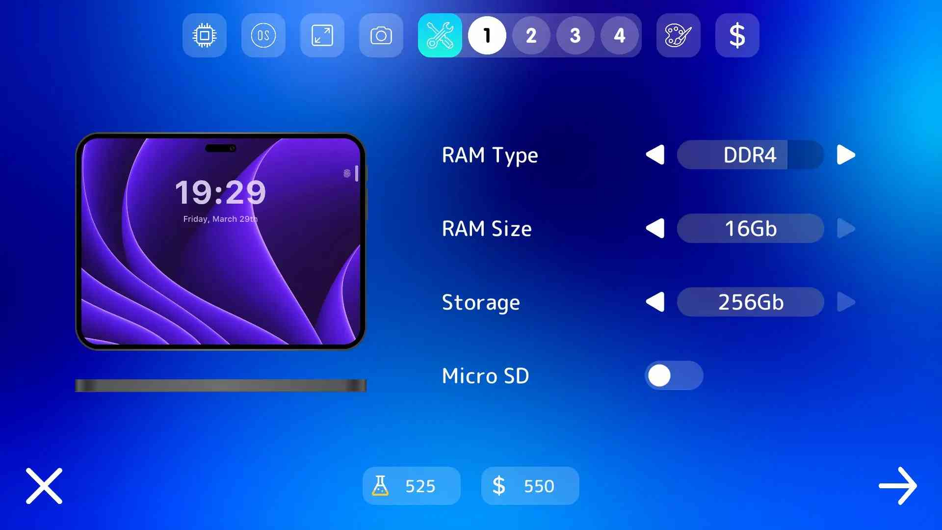 4、 手机设计:游戏的手机设计功能参数非常多,有长宽和手机厚度、屏幕大小、屏占比、home键风格及位置、手机外观、按键位置、前置相机、后置相机、颜色、屏幕类型及分辨率、cpu、内存、存储……因为科技发展还能研发更多东西,说到底。。