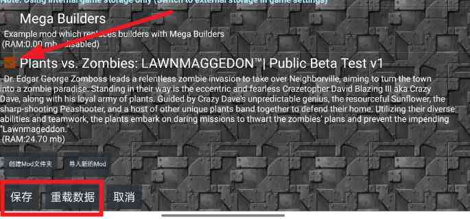 注:首次进入游戏选择最底部的模组勾选plants vs zombies这个模组点击保存和重载数据即可游玩该模组,说句可能得罪人的话...。
