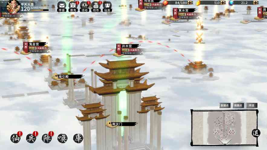 中国神话战争游戏, 美猴王配音有西游记那味,其他战斗场面宏伟,主要玩法为仙灵的巨、法、斗。吹爆这种模式, 虽然可以追溯到英雄+兵种的玩法,不过“真香”,很好还原了神话传说的模式,百万天兵布阵,神仙腾云斗法,一言不合就法天象地,顺便一脚踹飞无数妖兵,而且三者战斗逻辑各不相同, 人间清醒。 让每一局都有不同的玩法。仙灵之外是兵团,常见的战、法、牧,虽然是炮灰,但是用得好围死神仙也很常见。再说神通。常见但是很有必要也很有战略性的玩法, 会用善用神通,是越级挑战的必备功课,也是扭转战局的关键手段,打乱阵型、强化战团、弱化地方等等。