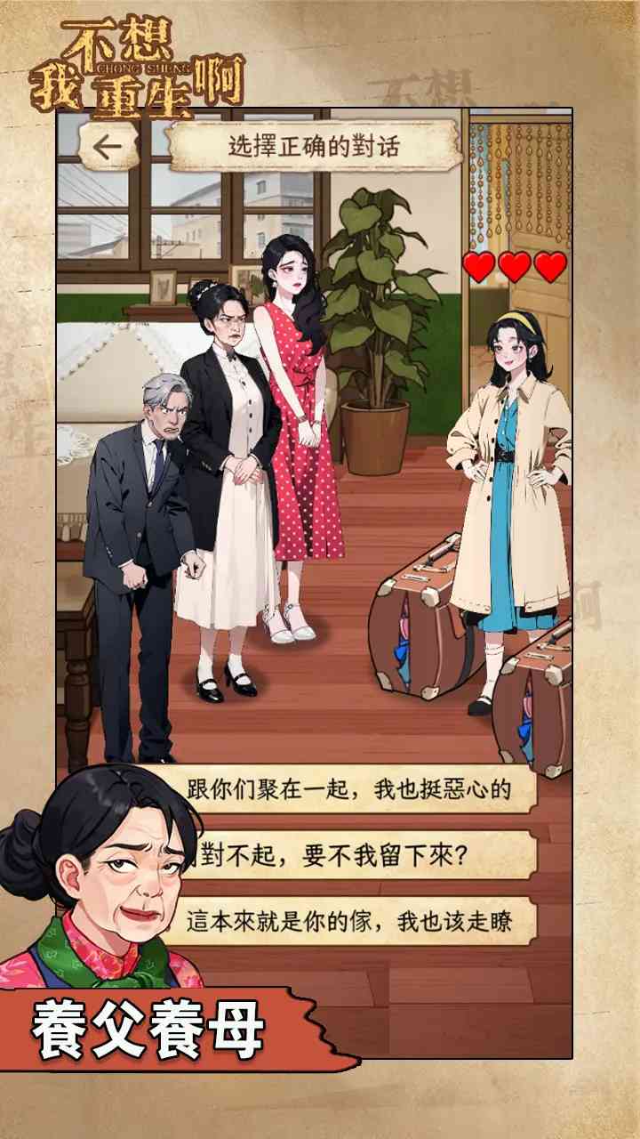 一针见血。 我不想重生啊是一款有趣的休闲模拟手游, 在游戏中玩家将以游戏角色的视角来体验精彩的游戏剧情,游戏集人生模拟、商战等多种玩法为一体,成为商业巨头,经营好自己的事业,且本页面提供的游戏版本去除了广告,感兴趣的小伙伴快来uzzf吧!