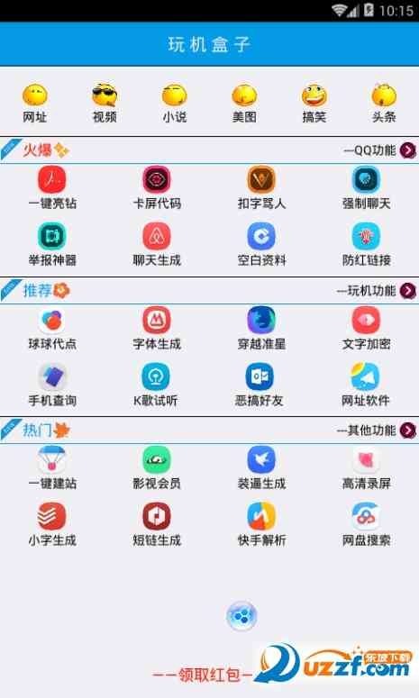 玩机盒子app 是一款全新的手机工具箱,软件具有一键亮钻、卡屏代码、聊天生成、 你没事吧? 空白资料、文字加密等火爆功能,可以修改qq空间手机标识,制作QQ假红包。