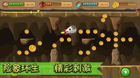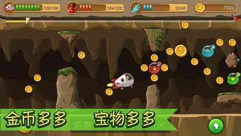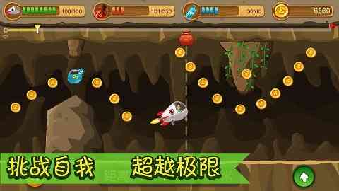 狭窄的洞穴里怪石嶙峋, 你驾驶着探险飞船,奋力向洞穴深处飞去,力争飞得更远,直到洞穴尽头!飞行途中,你可以收集金币用于升级装备,也可以拾取各种宝贝用以提升飞船的性能、 干就完了! 防护性和续航能力。在重重障碍中挑战自己,惊险刺激的飞越体验会让你欲罢不能! 单机任意玩、联网拼排名,操作简单,好玩又有趣!