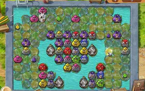 一些被锁住的鸟需要用同色的鸟相连来开锁,一般的连法为横三个,纵三个或者三角形。