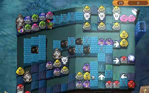 6种不同的敌人会随机出现并阻碍消除的进程, 不同敌人应对方法不同,比如普通猫用两只同色的鸟就可以带走,学者猫就必须用三只鸟才行,C位出道。。