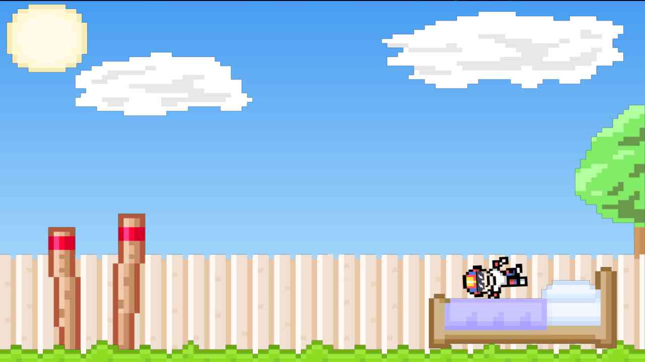 游戏中你需要帮助懒人弗莱克弹射到他想要去的地方, 比如他想躺床上,你就要用弹弓把他发射到床上,看好你哦!。