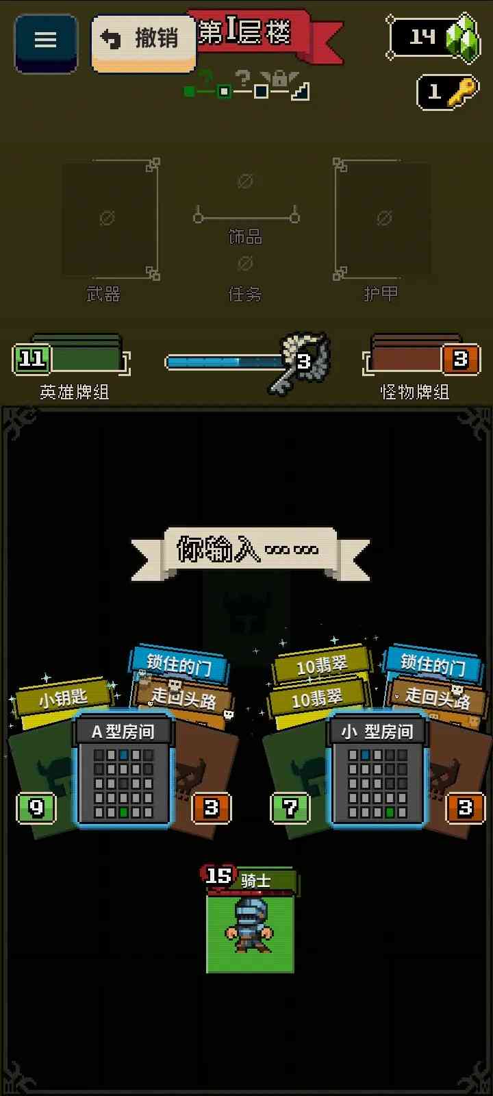4、所以呢,请仔细计划如何使用资源。你的牌组足够强大吗?你会到达下一个房间吗?