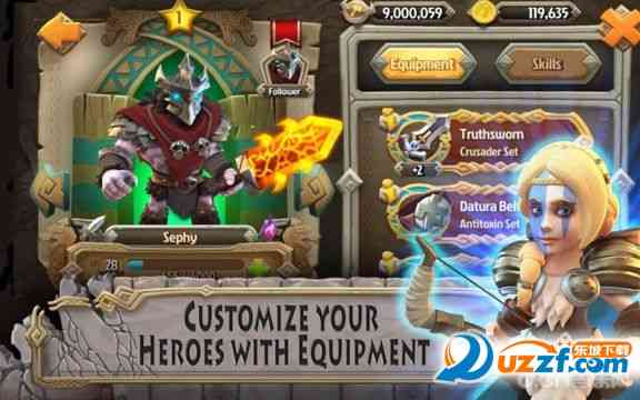 他破防了。 在游戏中, 玩家要招募格雷英雄和神明,带领他们与来自冥界的死亡女神进行对抗嗯。玩家可以在游戏中自由的编组自己的小队,为他们装备各种武器和法术,还可以帮他们升级来提高团队的战斗力。玩家可以将自己的小队派往关卡中进行战斗,并通过各种法术来帮助索尔、贝奥武甫等英雄取得胜利。