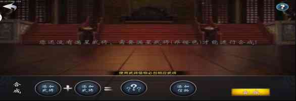 扎心了... 合成出的武将根据您的武将信物而定,你可以通过魂币购买你想合成的武将信物。
