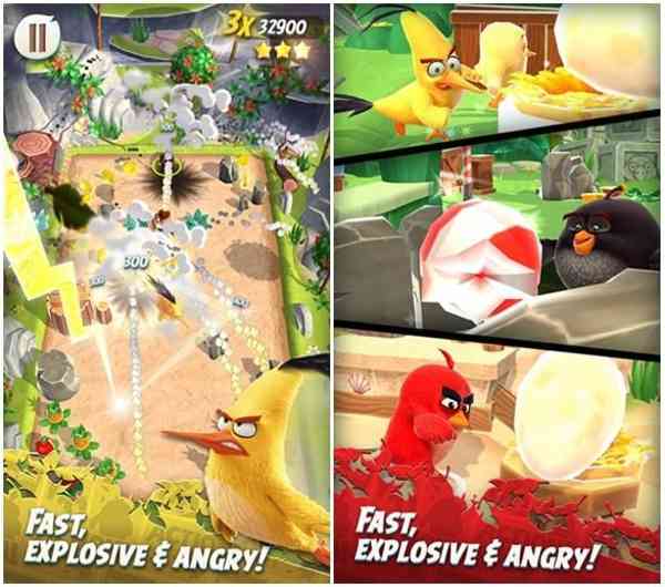 游戏在玩法上还是经典的弹珠射击玩法, 不同的是此次采用了竖屏的操作模式,游戏中小鸟可以在屏幕中多次弹射,带给玩家新的创新玩法和体验。虽然《愤怒的小鸟:行动》依然是弹射小鸟的玩法, 但却与玩家们常见的弹弓打小鸟完全不同,这次的弹射更相似于《怪物弹珠》这样的操作和玩法。玩家不仅需要在弹跳的过程中保持蛋不会破损,还要收集各种珍贵的道具。还有啊游戏中的主人公也将由各自技能不同的大红,查克和炸弹共同担当,预计今后还会推出新的角色。