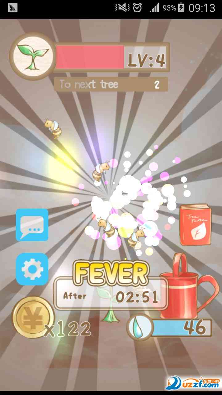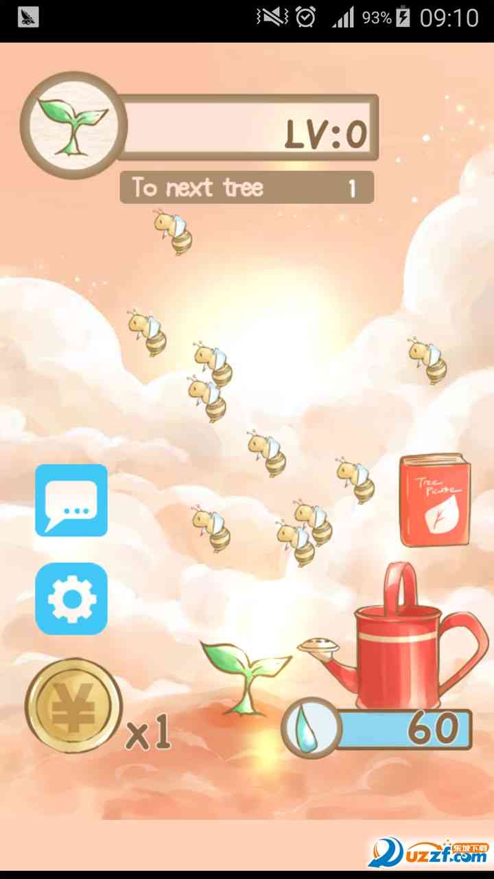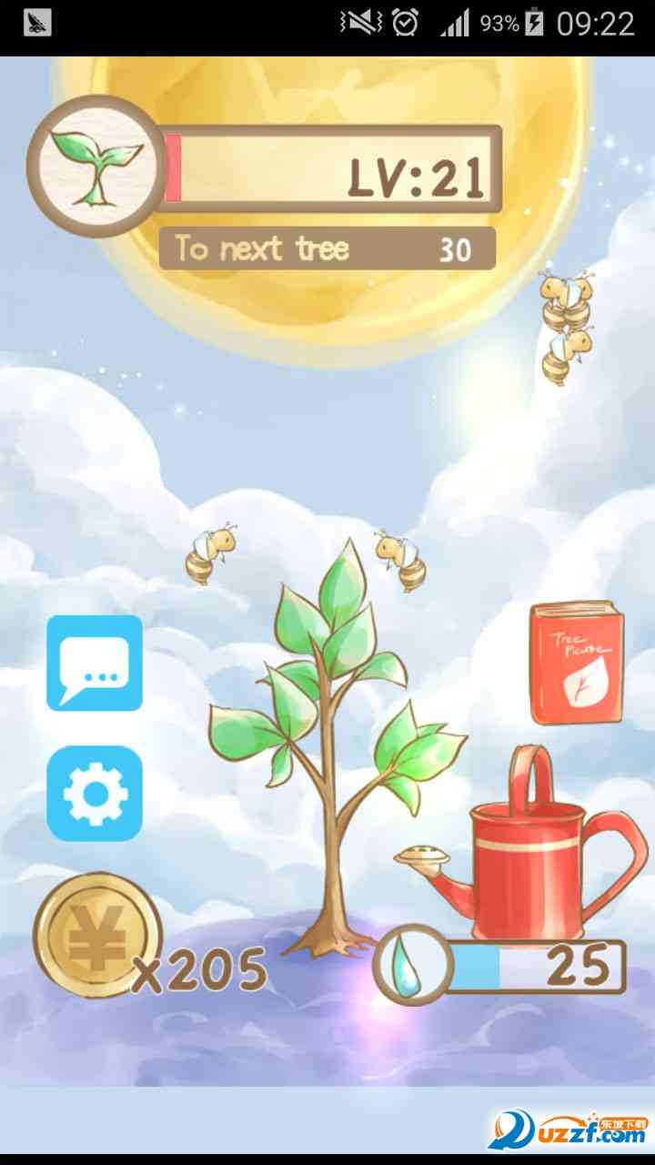 戏,本质上其实也就是放置类。你需要不时地给小树苗浇水,使它茁壮成长。当蜜蜂出现的时候,似乎就是你可以增加金币的机会了。金币再用来买道具,再用来使树苗长得更好。
