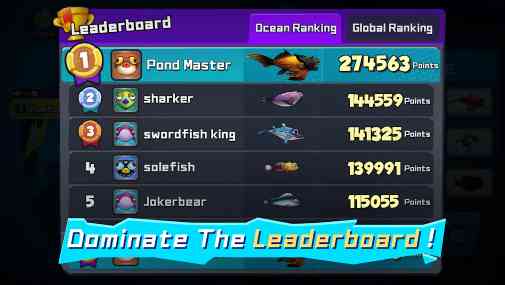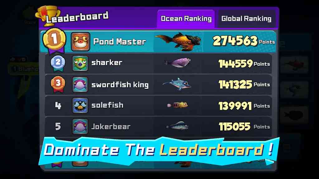 一针见血。 1、 您可以通过捕食其他鱼类来积累积分,并与来自世界各地的玩家竞争,看看谁才是真正的海洋主人。