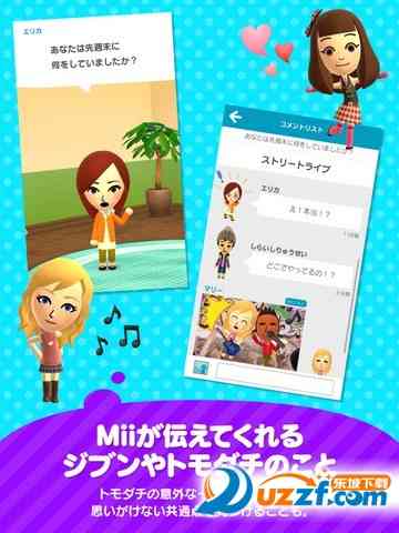 盘它。 Miitomo是一款可以休闲益智类游戏, 游戏中你可以创建一个Mii角色与其他的玩家扮演的Mii角色交流,而这个交流是很分散的,可能会不知不觉就会连接上,这款游戏的玩法能鼓励对于人际关系有些紧张的人去更好的体验生活!