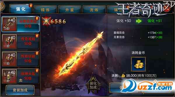 ★点击装备面板中的不同页签,守护者可以对装备进行强化、精炼、升星、洗炼、镶嵌、附魔;