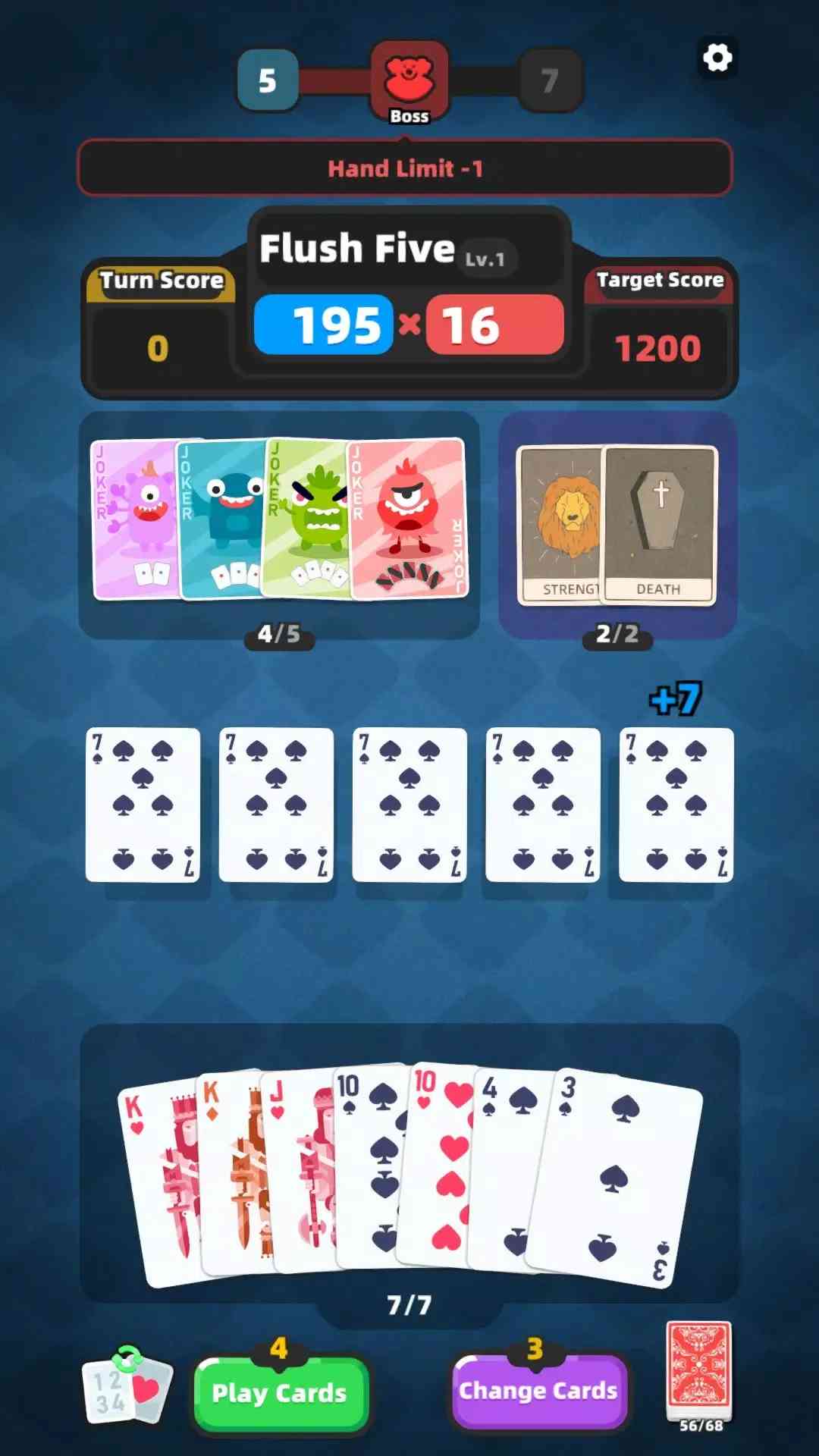 3、 将小丑牌和扑克牌进行结合,能够获得不同攻击技能效果的卡牌,玩家们需要发挥自己的聪明才智来合理使用不同的小丑牌。