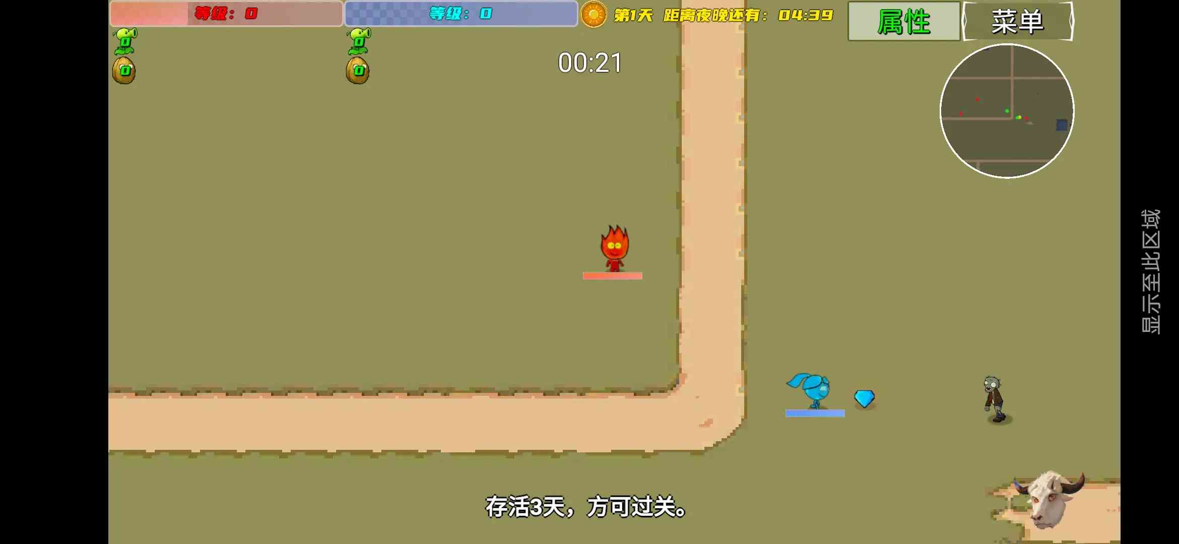 冰火人幸存者由B站UP头牛o自制的冰火人改版游戏, 由玩家控制活人,AI控制冰人,存活三天三夜即可获胜。游戏中一个昼夜是显示的六分钟, 白天五分钟,夜晚一分钟,选择的难度越高,白天的时间就会越短,夜晚的更长这个。白天相对平安, 适合探索,击杀敌人会掉落宝箱和宝石,拾取宝箱获得武器和装备,获得宝石升级武器和装备