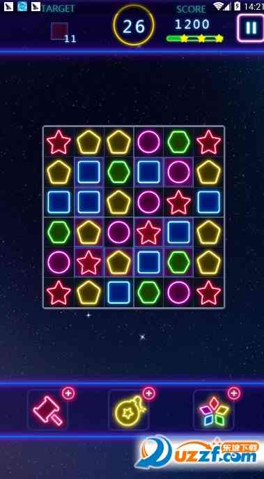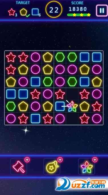 1、 萤光方块主题的三消益智游戏;