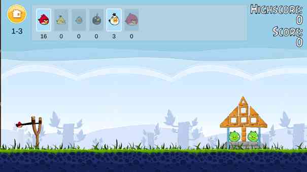 1.调整弹弓的角度和力度,发射不同种类的小鸟,击倒占据自己家园的绿皮猪