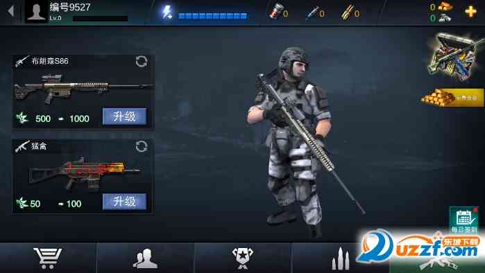 玩家的主要任务就是利用手中武器打败敌人,在不暴露行踪的前提下干掉目标就是你的任务。每一场战斗都将获得积分,还有其他的奖励,每天签到也能获得金钱奖励。后期金钱增多,就能升级枪支部件,让你的攻击力提高,什么鬼?。