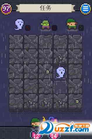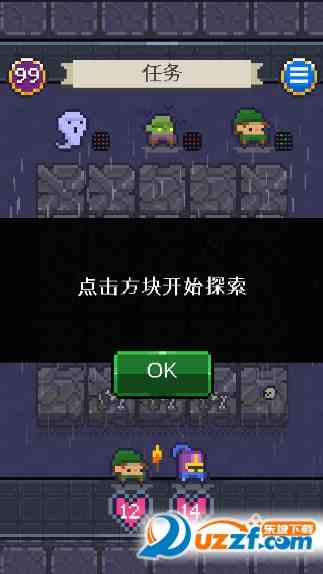 游戏里你要带领10个冒险家去一个陌生的地牢里探险, 地牢一共有7层,你要越过重重障碍去到BOSS处,并且必败它方能通关,这可不容易哦。地牢每一层楼都有许多地砖,这些地砖是可以探索的, 格局小了。 一不小心说不定能找到什么宝物。除了地砖, 路上的各种小怪也是棘手的问题,你要利用合理的策略和它们战斗,获取每层的钥匙,才能顺利的到达下一层,直至BOSS处。