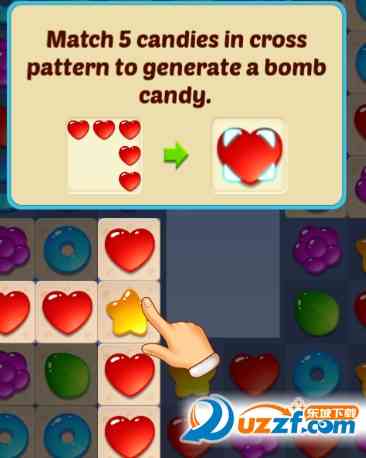 完成5个连续消除可以获得一个爆炸糖果,这将为你的游戏带来更多的可能性。