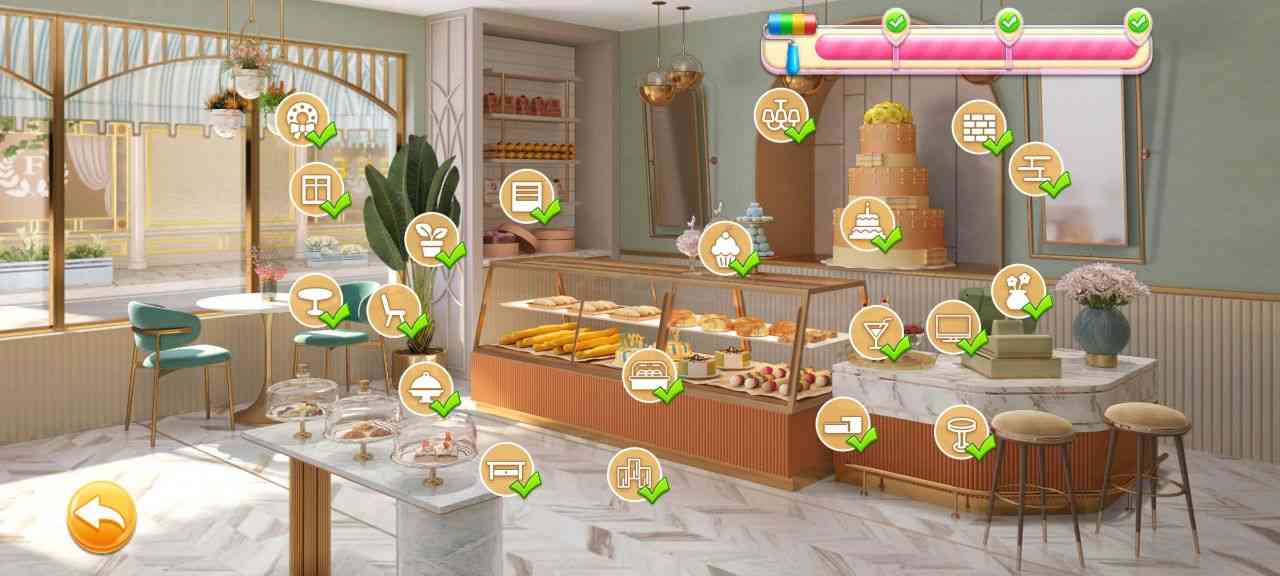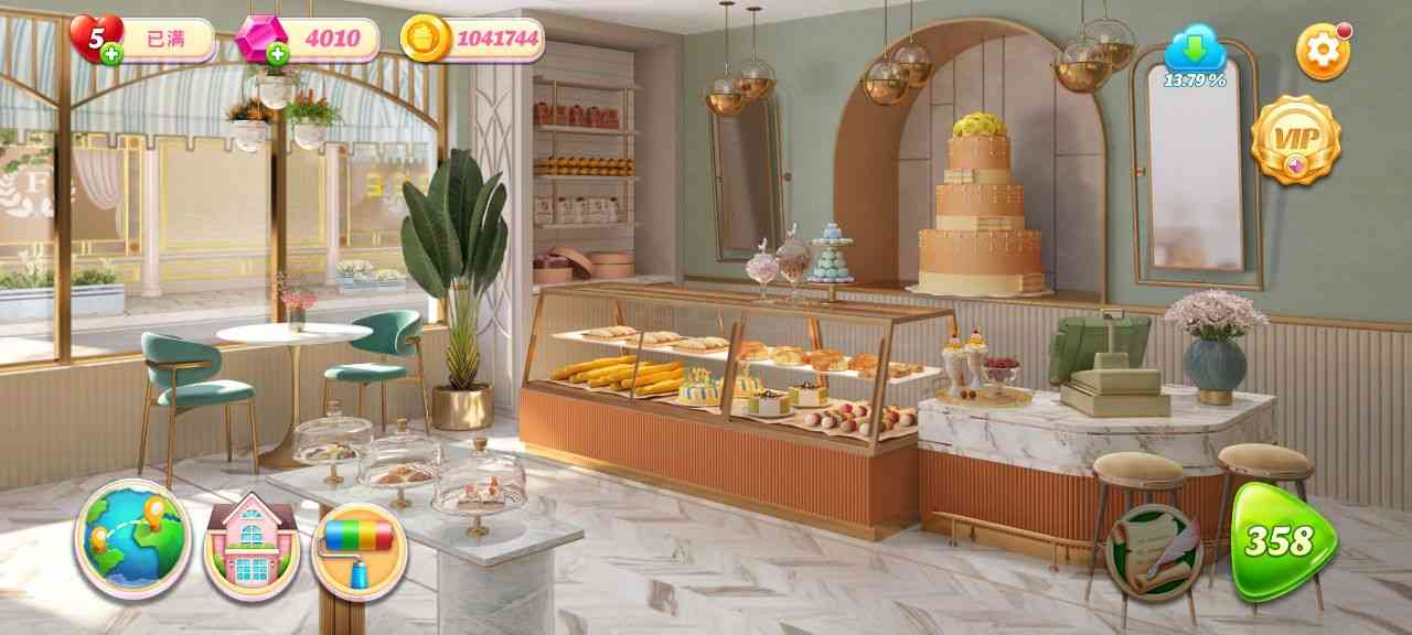 消消乐+装修游戏的结合体,通过玩消消乐游戏来赚取金币,金币用来装修改过这家老旧的面包店,升级家具、雇佣更多工人等等都是需要赚钱的,你也可以选择看广告做任务来获得金币,一言难尽。。