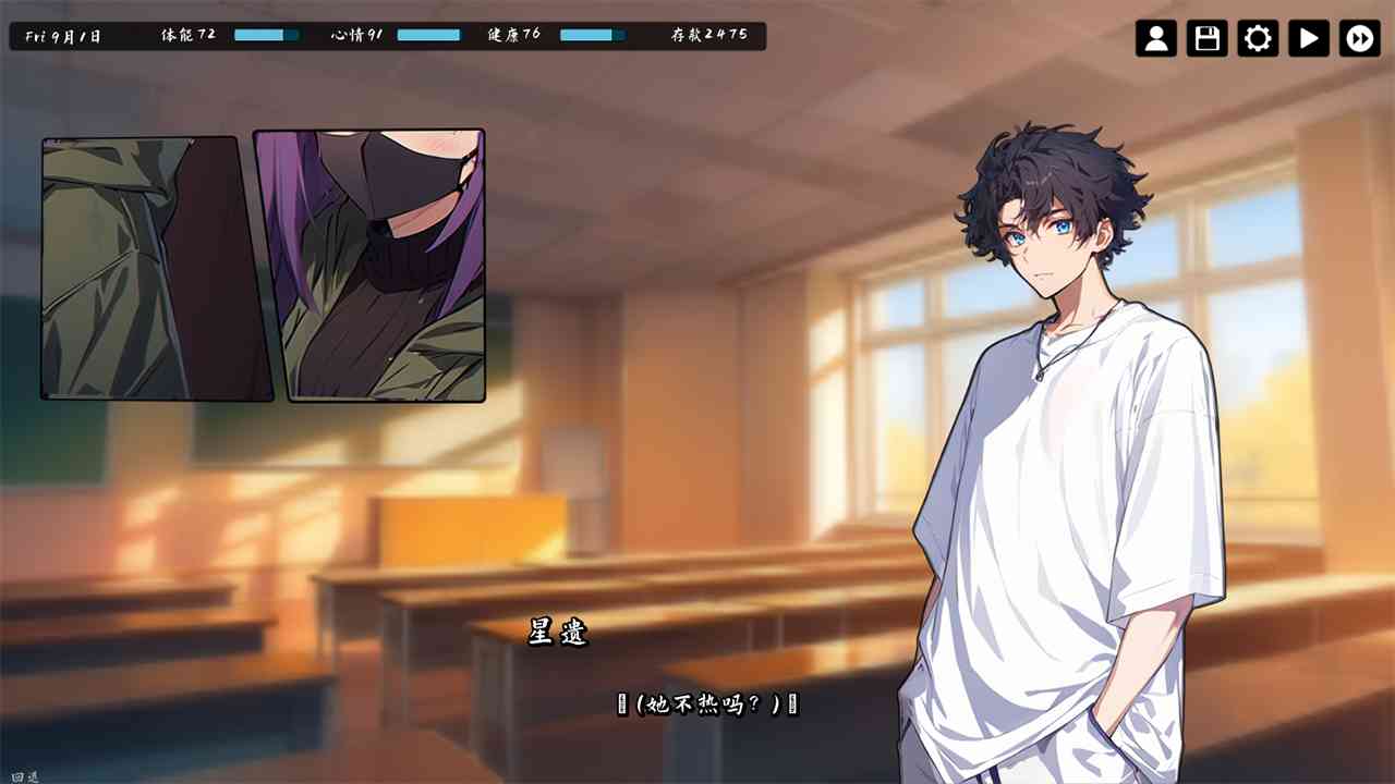 对于这款游戏, 剧情向的类型,当仁不让的突出一个剧情故事的核心所在。先说说 关于一个主题风格的展现,非常明显的选取了恋爱和校园两个元素进行了磨合与释放,对于玩家的感受当然也会是一个领域方向的专研和魅力体会。非常明显的, 对于剧情故事的篇幅设计是非常丰富的,真的就是做到了和小说一样的基本叙述形式,在于其中内容文字极具想象力和活跃,更在于其中剧情故事环环相扣而层层递进,足够为玩家带来渐进式的游戏体验。