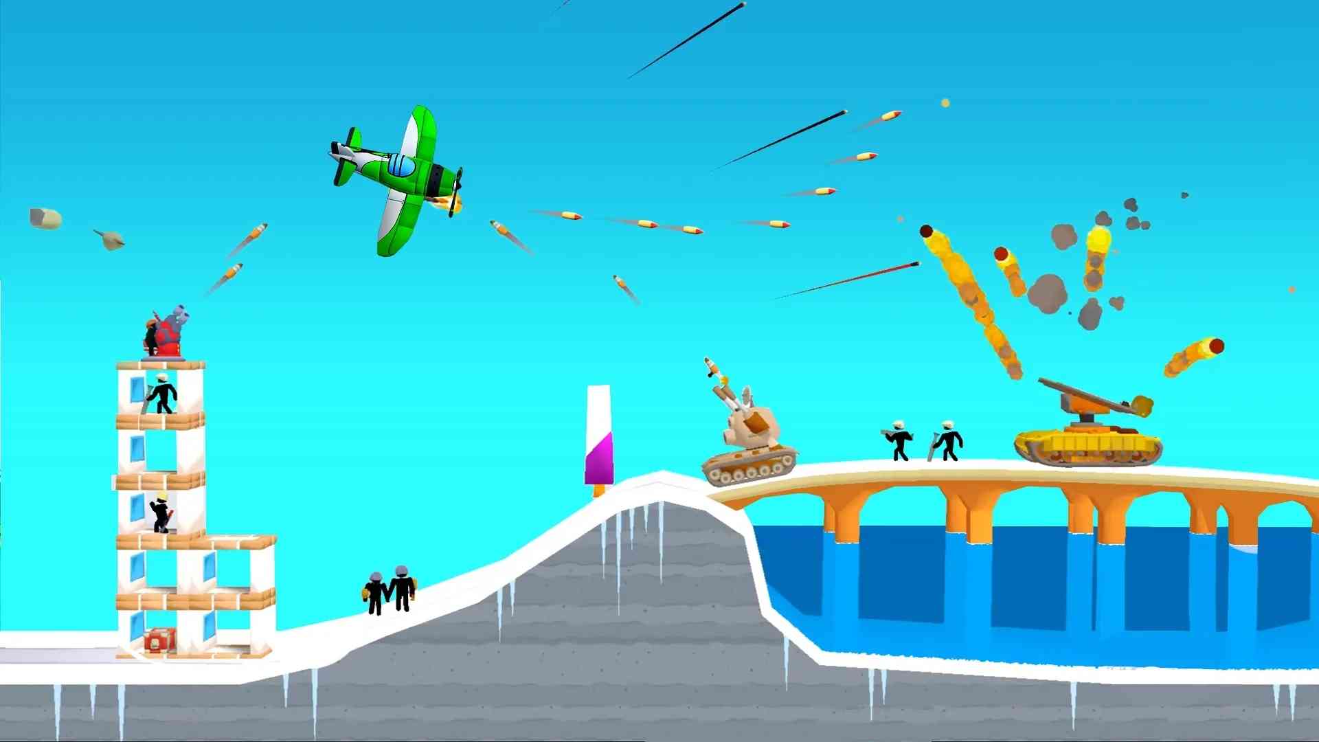 这款 3D 游戏讲述的是飞机上的火柴人摧毁了敌人的武装火柴人人群,这些火柴人在有趣的可破坏建筑和设备中。当你用空中飞行射击炸弹或空气炮轰炸它们时它们非常容易被摧毁,KTV你。。