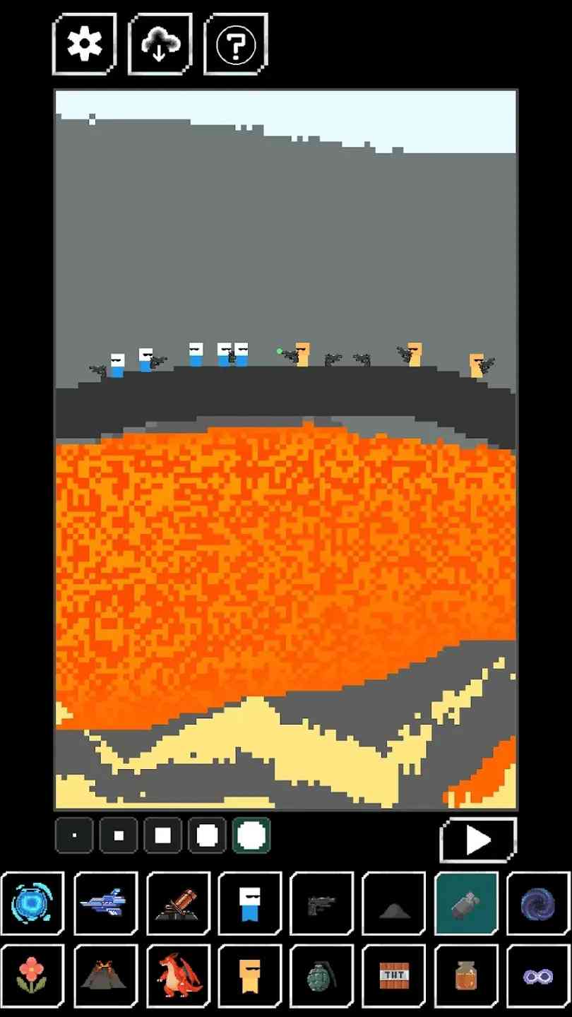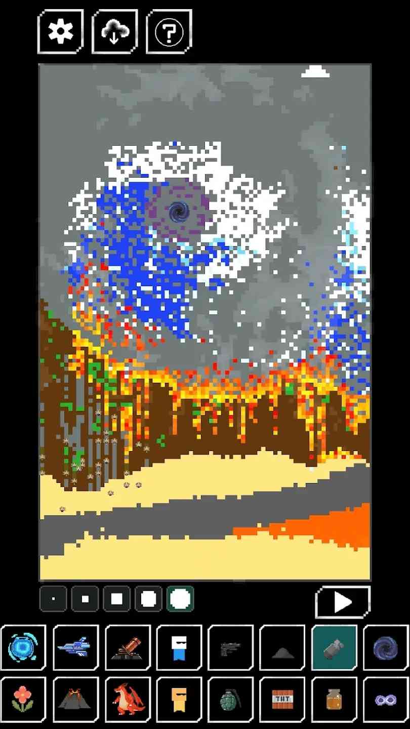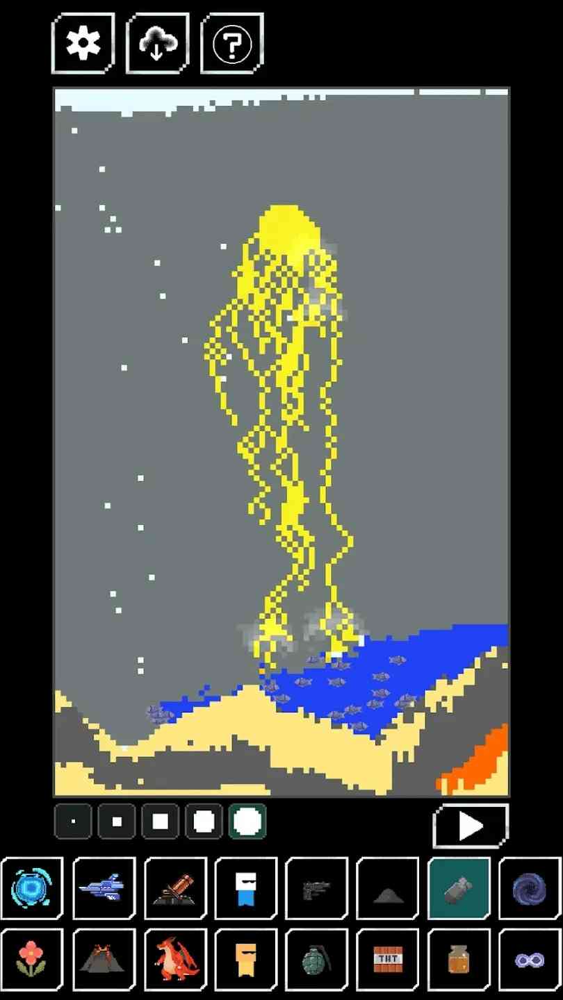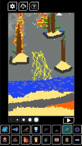 沙盒:上帝模拟器是一款模拟沙盒游戏。这是一个像素沙盒游戏,你可以将多个不同的元素放入场景中,形成一个独特的小世界嗯。游戏中共有水、 对,就这个意思。 火、冰火、火药、人等元素,加上鸟、蜜蜂、蝗虫等生物,以及花、树等植物总计 40 种以上的各式各样的元素。