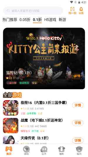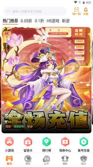 - 提供了游戏充值折扣,最低可达到1折,各种大额福利都是可以领取。