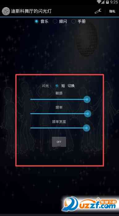 出岔子。 应用进程是非常轻便和易于使用。在音乐模式中, 你可以很容易地调整灵敏度和频率,并作为一个灯光表演各种卷和音乐流派,您的手机将表现良好。