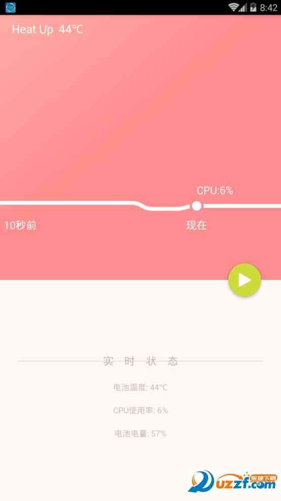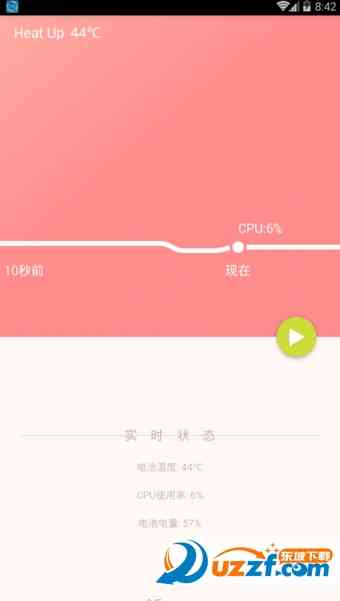 1、 打开软件后会自动显示你手机的cup电池的热度;