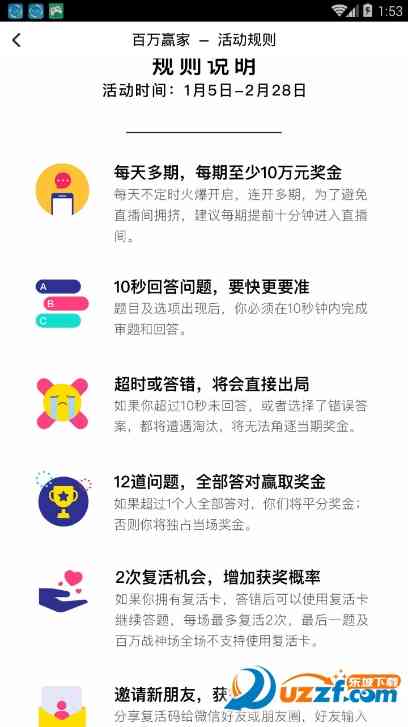 3.答对所有题目冲顶成功即可瓜分百万大奖