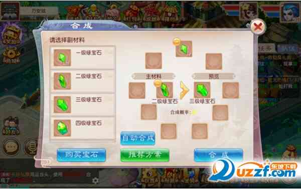 点击主界面按钮,选择分页:合成,进入宝石合成界面;,试着...
