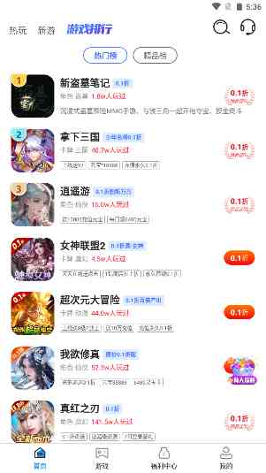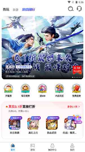 0.1折趣手游app是一款涵盖了很多游戏资源和下载服务, 可以通过该平台发现最新、最热门的手游,并且享受各种折扣福利,该应用提供大量的游戏折扣和优惠活动, 别怕... 用户可以以极低的价格购买游戏道具、礼包,是手游爱好者的一个理想选择,随时可以玩到自己喜欢的游戏。