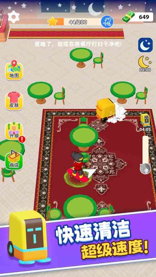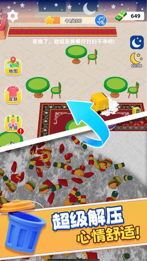 整理杂乱的房间,清除垃圾,为你梦想的餐厅奠定基础。因为你的进步,解锁收银机、食品摊和桌子来吸引顾客并增加你的收入,我倾向于...。