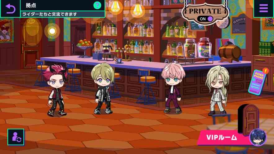 人间清醒。 在作为“特工”的藏身处而开放的“假面咖啡馆”与假面骑士们进行互动吧。通过与他们互动并提高他们的亲和度,你可以解锁故事、声音等。