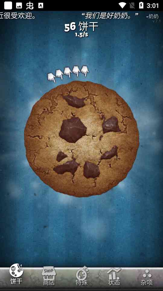 《饼干点点乐》是一款制作饼干,数量大到夸张的小游戏。为了制作更多的饼干, 你可以招兵买马各式各样的饼干制造者, 妥妥的! 比如慈祥的老奶奶,农场,工厂和异世界的穿越门。
