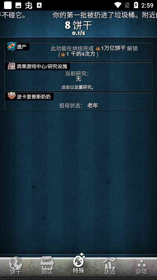 简直了。 -游戏内没有关卡设定,导致长时间的游玩体验正反馈不足,除了数字一直在几何增长,没有明确的目标没有方向,很容易感觉不知道在玩什么